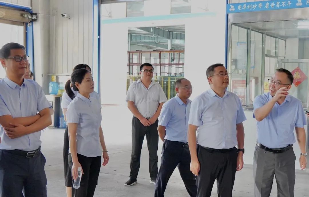 在黎俊彥的帶領(lǐng)下,張偉、田墨文一行還先后參觀了玉立紡織區(qū)、智能砂帶區(qū)、新砂帶二區(qū)、光伏發(fā)電區(qū)、智能倉(cāng)庫(kù)。